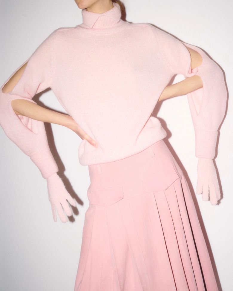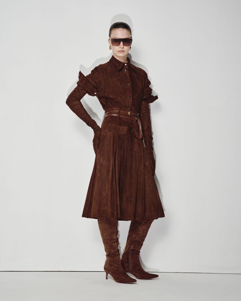 Залишаючись вірною своїм витонченим, але мінімалістичним силуетам, команда бренду презентує нові предмети верхнього одягу, зокрема укорочені бомбери та об’ємні пальта з м’якої замші. Класична за кроєм, проте виконана з ніжної шоколадної замші, парка з чотирма кишенями та акцентною талією є головним елементом колекції та квінтесенцією погляду Катерини Квіт на сучасний жіночий гардероб.