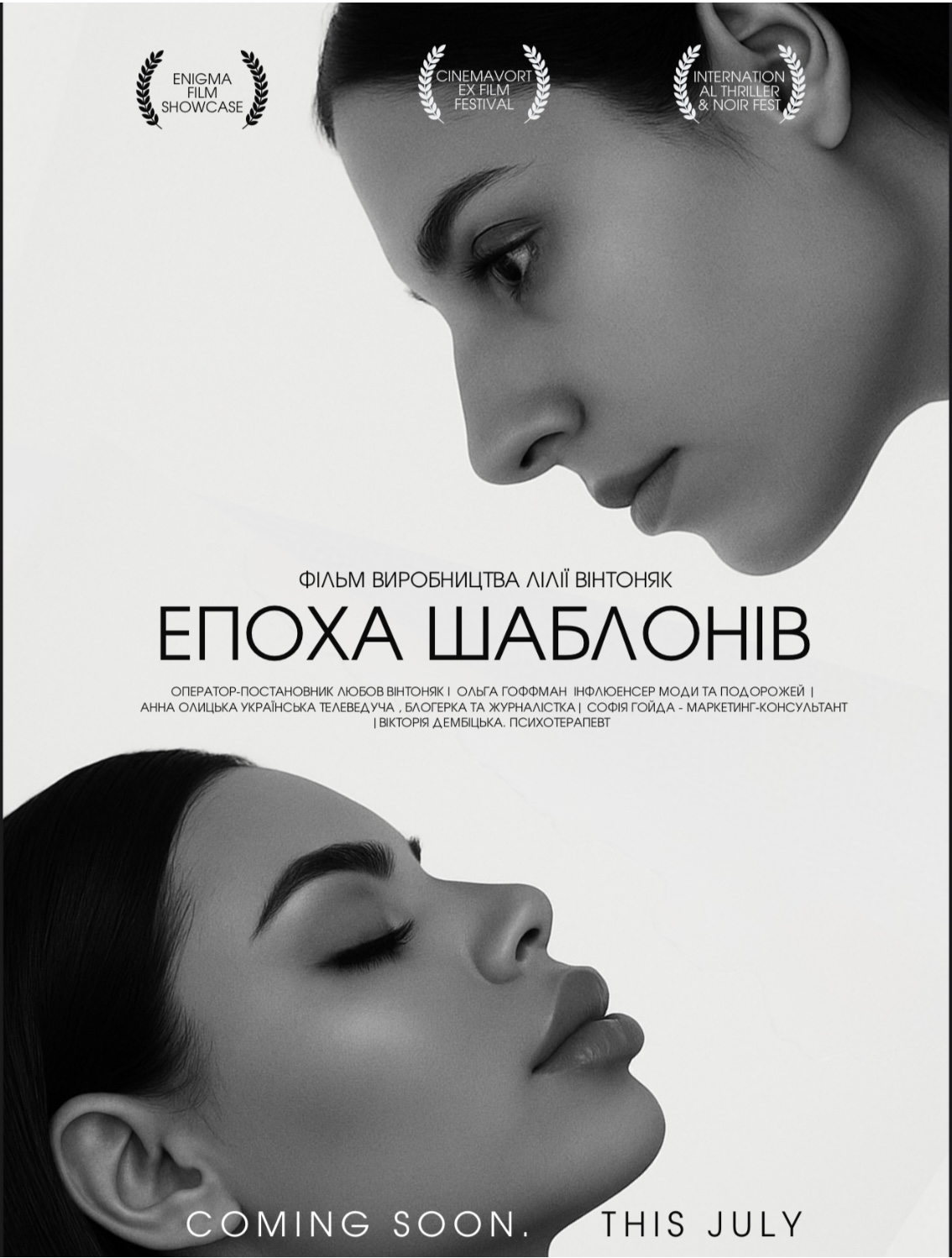 Документальний фільм «Епоха шаблонів» народився передусім із внутрішнього емоційного болю – це був період, коли я шукала спосіб трансформувати власні переживання, сумніви і падіння у щось змістовне, і саме документування стало для мене способом осмислити як зовнішній світ, так і себе всередині, а також знайти людей, які відчувають подібне. Ідея з’явилася під час зйомки одного івенту, коли я раптом помітила, наскільки схожими стали жінки: однакові риси, образи, намагання відповідати певному стандарту; це викликало відчуття втрати індивідуальності. У той момент я зрозуміла, що хочу говорити про це через кіно і показати реальні історії людей, їхні внутрішні пошуки та боротьбу. Для мене «Епоха шаблонів» – це не просто фільм, а спосіб чесно говорити про важливе і створювати простір для тих, хто готовий цю правду почути.